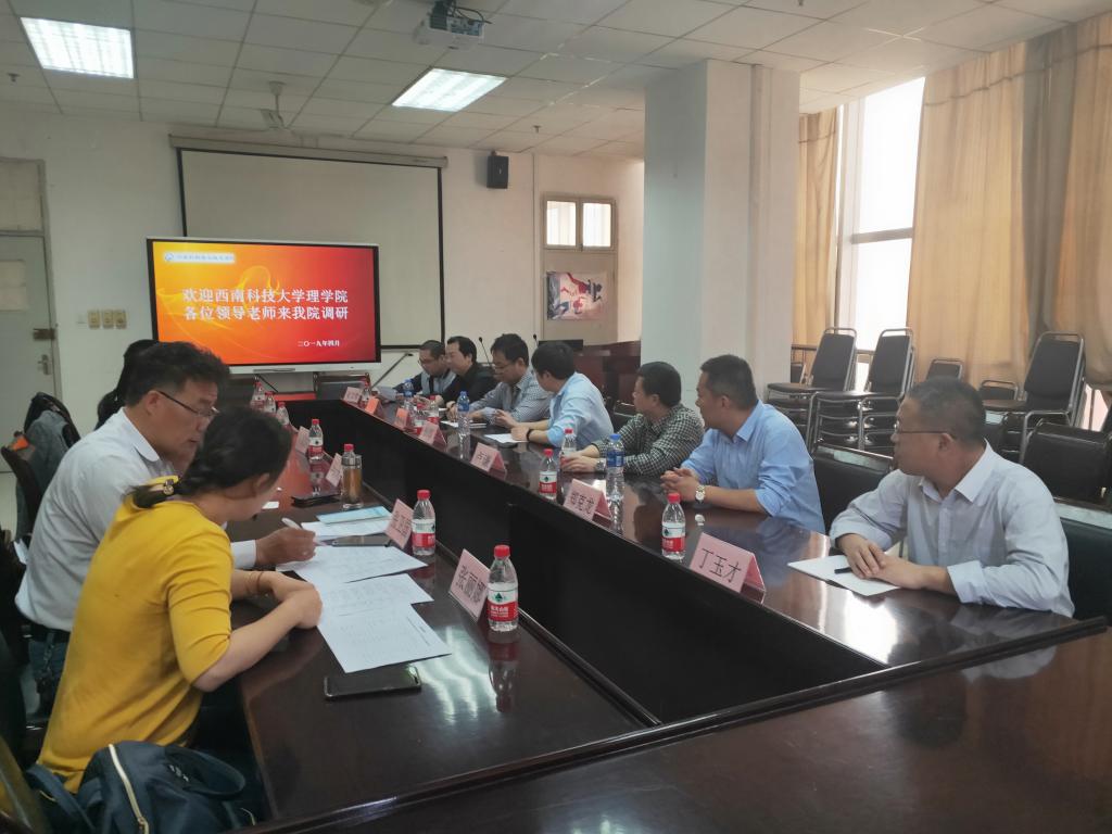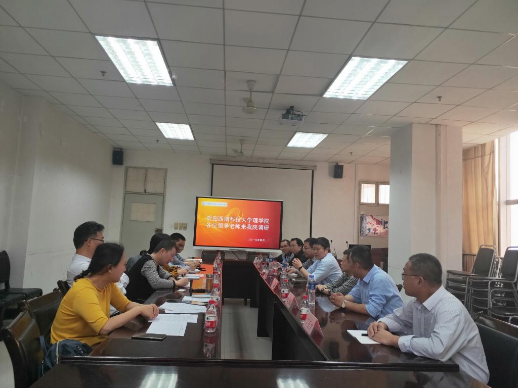 4月19日,西南科技大学理公司党委书记张晖一行七人莅临公司学习、交流。计算机公司党政领导班子、信息科学系主任、副主任及有关人员参加交流座谈会。