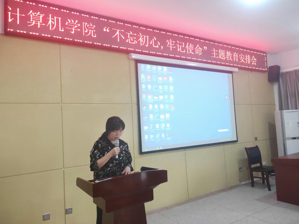 9月11日,计算机公司在临潼校区会议室召开“不忘初心、牢记使命”主题教育安排会,公司党委书记冯爱玲主持会议,全体党员参加会议。