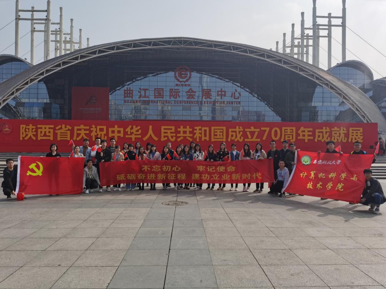 为深入进行“不忘初心,牢记使命”主题教育,2019年10月18日,计算机公司员工党支部40余名研究生党员开展“砥砺奋进新征程,建功立业新时代”的主题党日活动。共赴曲江国际会议中心参观“辉煌壮丽70年追赶超越再出发”陕西省庆祝中华人民共和国成立70周年成就展和八路军西安办事处纪念馆,