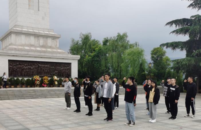 渭华起义纪念馆,师生党员依次参观了渭华起义陈列大厅、渭华起义旧址、瞻仰了革命烈士纪念碑。一幅幅生动的历史照片、一件件承载时代记忆的历史文物、一篇篇详实的文献资料、一段段感人的革命事迹,让师生党员身临其境地感受革命的艰苦卓绝、英烈的英雄无畏,心生感念、心怀感恩。渭华起义旧址师生一起学习李维俊烈士英雄事迹,他带领师生用砖石镶嵌的“同志们赶快踏着先烈的鲜血前进啊”15个大字,催人奋进、令人心潮澎湃。烈士纪念碑前,师生党员重温入党誓词,温故入党初心,面对烈士在革命需要时的敢于牺牲生命的表现找差距。