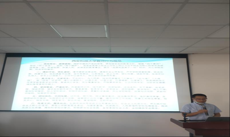 党委副书记陈伟伯领学习近平总书记在教育大会、清华大学考察时对加强教师队伍建设要求和对广大教师的希望;副经理于振华领学“伟德官方网站教师行为规范”;副经理马天带领全体教师庄严宣誓。罗晓霞、张小艳、许晓阳、马天、邓凡、白生宝6名教师结合自身成长经历和教学、科研、管理服务经验谈认识体会。
