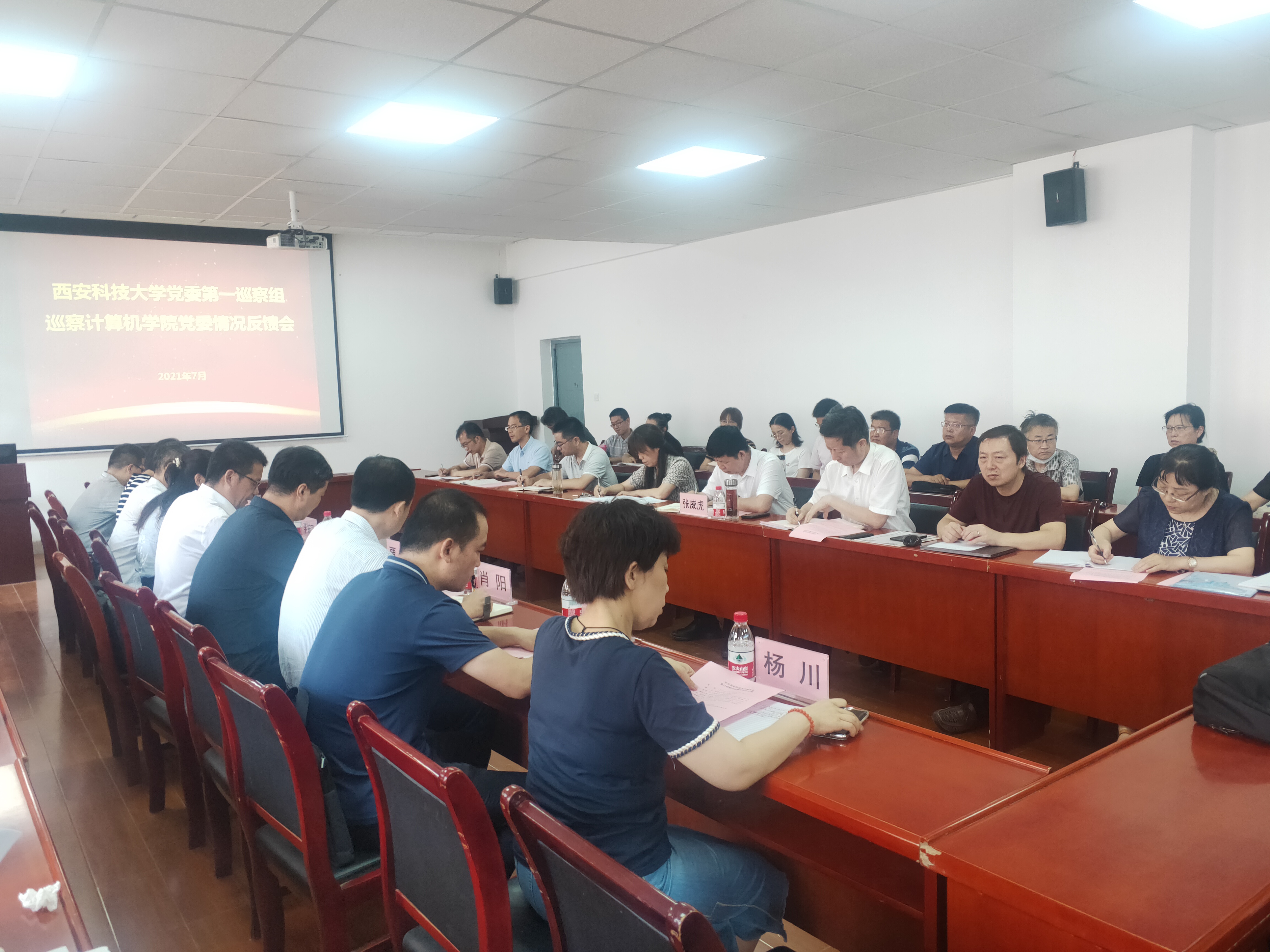 7月17日,在临潼校区15号教学楼323会议室,计算机公司召开公司党委第二轮校内巡察工作反馈会。副董事长张威虎、巡察办、公司巡察组全体人员、计算机公司党政班子成员、纪委委员、工会委员、副高及以上专业技术人员、党支部书记、系主任、师生代表等参加会议。