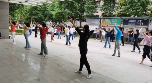 为了提高公司教职工健身意识,增强健身活动的实用性和参与性,积极参与校工会开展的教职工团体健身操比赛,计算机公司从4月开始,院工会在全院教职工中积极组织宣传,各系(部、室、中心)积极响应,全体教职工积极参与,在此期间,院工会组织在线上加强辅导,取得良好成效。并于2022年5月18号下午于临潼骊山校区举办计算机公司健身操活动,并选出20名优胜者参加全校广播体操比赛。