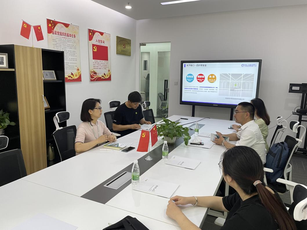 为落实公司“访企拓岗”专项行动有关精神,进一步推动毕业生就业工作,拓展老员工实习实训平台,加强校企产学研合作,5月25日下午,计算机公司党委副书记陈伟伯、毕业班辅导员刘伟轩、2022届毕业生代表一行4人,来到西安四叶草信息技术有限公司和西安高新区丝路创新谷物业管理有限公司走访交流。