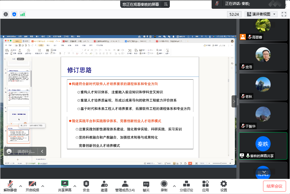 2月13日至15日,公司组织校内外专家对2022版本科专业人才培养方案和课程大纲进行审查并下发整改任务书,公司高度重视,根据专家反馈的意见和建议,明确整改任务和要求,组织相关专业负责人和系主任对人才培养方案和课程大纲进行修改完善,并于2月22日晚在线召开公司2022版本科专业人才培养方案和课程大纲审查会,对修订的新版本再次审核。