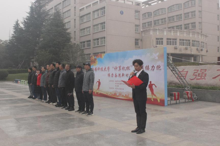 11月23日,由校体育运动委员会、校团委、体育部主办,计算机公司团委承办的“计算机杯”环道接力跑活动在临潼校区骊山校园举办。驻校纪检监察组副组长贾斌、计算机公司党委书记李绥波、体育部主任王华、建工公司党委副书记吕勤勇、计算机公司党委副书记郭胜忠,体育部、计算机公司教师代表、15个公司的参赛选手参加活动。