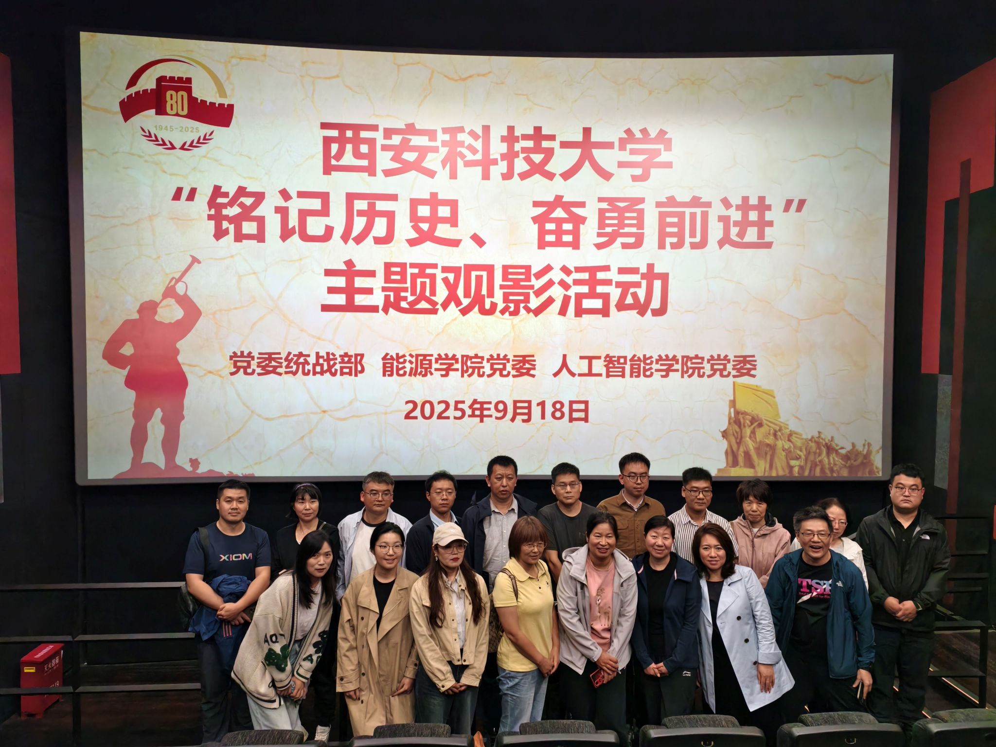 为纪念中国人民抗日战争暨世界反法西斯战争胜利80周年,知史明智、行以致远,9月18日,在“九一八”事变94周年纪念日当天,人工智能与计算机公司党委与公司党委统战部、能源公司党委联合开展爱国影片《731》观影活动。公司班子成员、科级干部、青年教师代表等20余人参加活动。