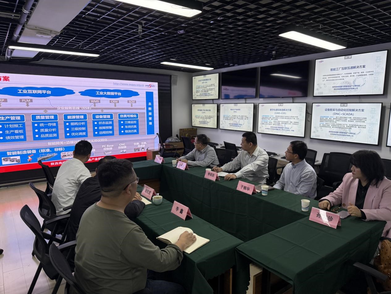 在陕西高端装备与智能制造产业研究院,公司员工、研究院经理赵红武对公司一行的到来表示欢迎,他详细介绍了研究院的发展历程、核心业务及未来规划。于振华介绍了公司在团队建设、团队力量、科研成果及人才培养等方面的优势,并就科研合作、产学研交流、员工就业等方面与研究院进行了深入探讨。