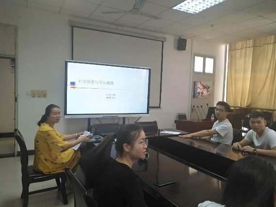 范文静老师在主题班会上讲解了“科学道德与学风建设”的主要内容。通过对学术不端、学术造假等学术行为造成的不良后果,并通过案例向研究生们敲响警钟。同时,给研究生规范撰写小论文并为以后的大论文撰写提出了意见。
