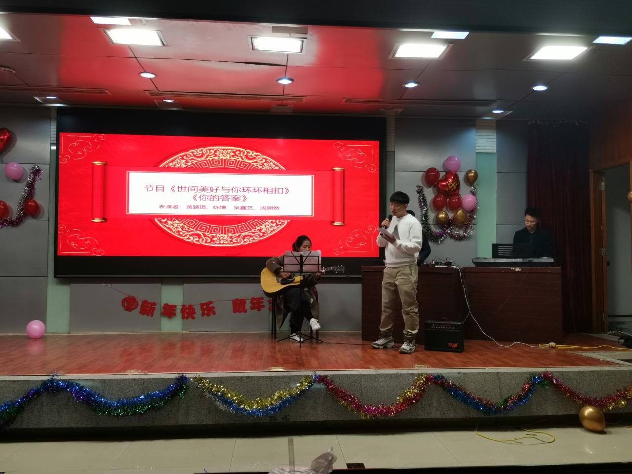 为进一步丰富校园文化生活,缓解同学们备战考试带来的疲劳,提高员工生活情趣和艺术创造力,2019年12月29日晚上7点,伟德官方网站计算机公司研究生会在图书馆二楼报告厅举办“不忘初心,砥砺前行”元旦晚会,2018级、2019级研究生参加了晚会,辅导员范文静出席并发表新年祝语。