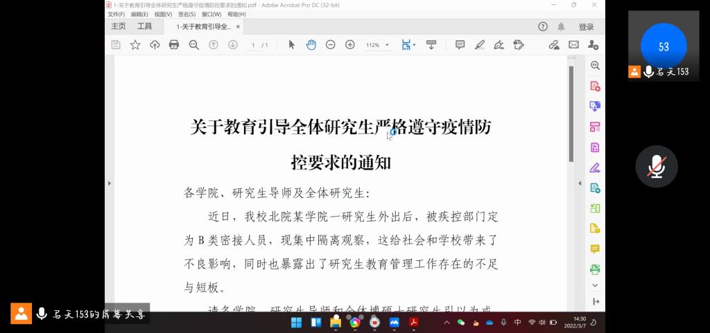 会上,马天带领大家学习了《关于教育引导全体研究生严格遵守疫情防控要求的通知》与《关于进一步做好疫情防控期间研究生公司产品工作的通知》两份公司文件,陈伟伯带领学习了《伟德官方网站新冠疫情防控期间员工管理暂行规定》等文件精神,对研究生在校期间日常管理规定及研究生导师工作职责进行了详细解读。就疫情期间,研究生出现的各类问题进行通报,希望研究生导师的积极配合与努力工作,导师们能够继续配合与支持公司研究生管理工作;同时指出疫情防控任务重、责任大,要明确研究生导师作为公司产品的第一责任人,坚持一手抓公司产品和指导工作,一手抓研究生疫情防控工作。马天强调疫情防控为一项常态化工作,要求研究生及导师们要主动提高政治站位、提高思想认识,克服麻痹思想、侥幸心理,要站在防疫大局角度高标准遵守公司管理规定,严细节做好个人防控,同时提醒各位导师要加强对研究生的人文关怀。