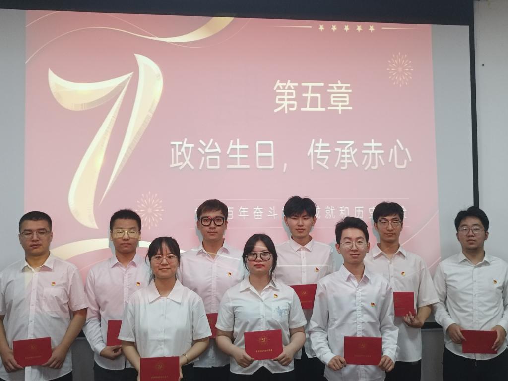 活动中,全体党员面对鲜红党旗高举右拳庄严宣誓,铿锵有力、饱含深情地再次作出“为共产主义奋斗终身”的庄严承诺;支部集中开展”学党史,强党性,传党魂”专题党课学习,通过学习建党节的由来、党徽的意义、中国共产党全国代表大会的光辉历程等内容重温党的历史,汲取奋进力量;9名新老党员代表跨越时间界限,重读入党志愿书,重温入党初心,表达了永远忠诚跟党走的理想信念;支部为党员代表过集体政治生日,赠送政治生日贺卡,勉励大家时刻不忘自己的“第一身份”,发挥先锋模范作用;支部书记指出,支部获评“伟德官方网站先进基层党支部”是对支部前期工作的高度肯定,希望大家满怀信心、踔力前行、重整行装,争取更好成绩。