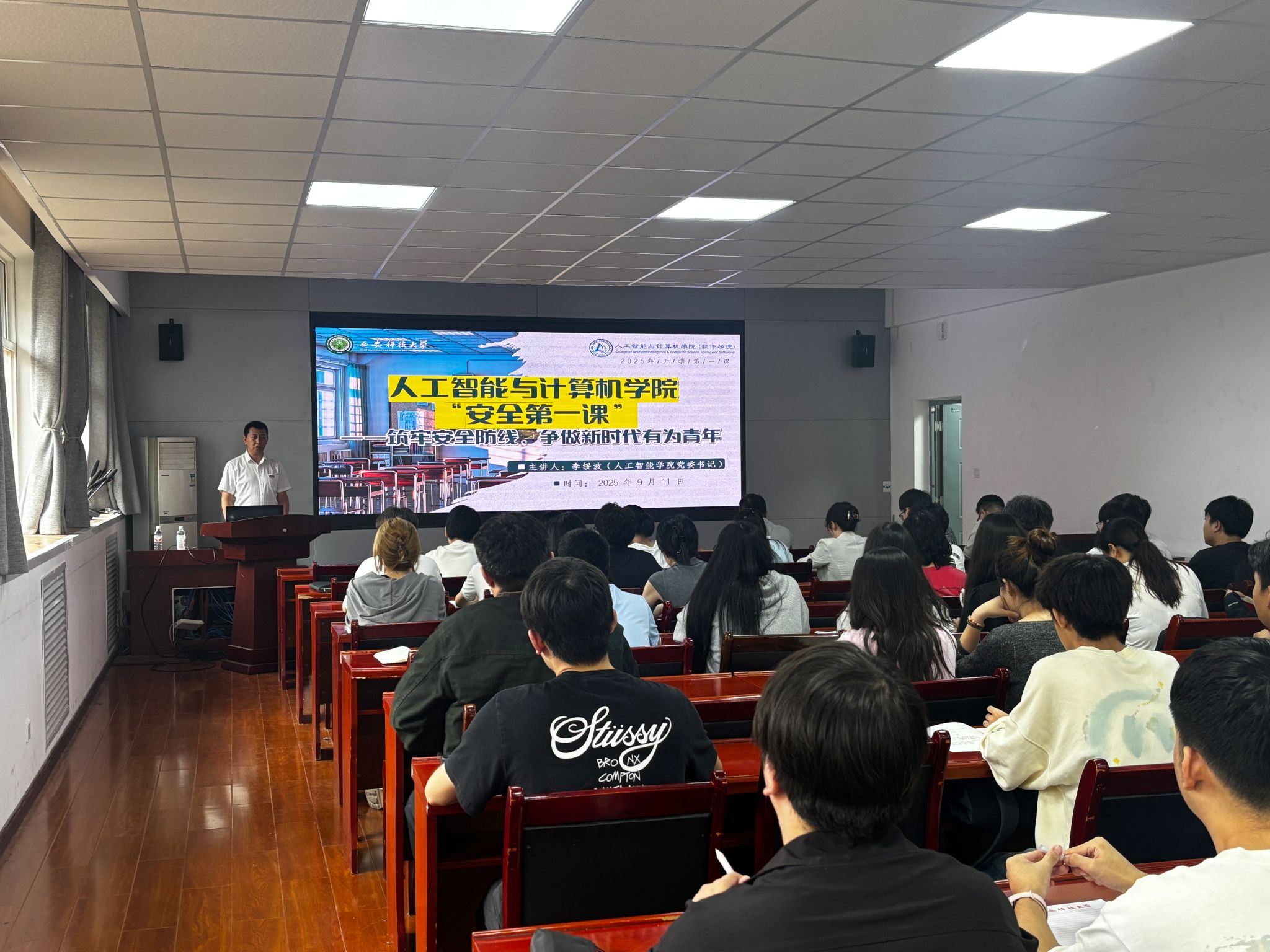 公司党委书记李绥波以《筑牢安全防线,争做新时代有为青年》为题结合高校真实案例,从“提升安全认知、培养安全意识、抓好安全防范”三大维度深入浅出为全体学工干部和员工党员骨干、团学干部地阐述了校园安全的极端重要性。