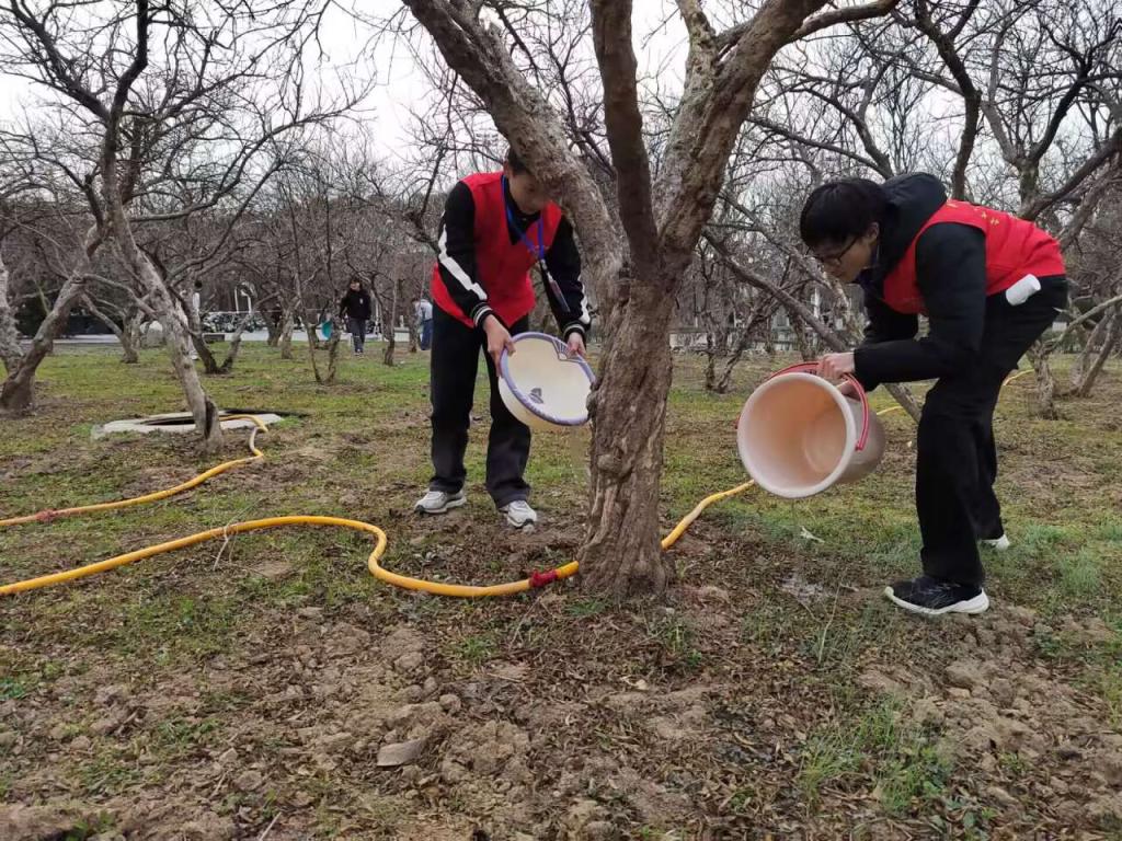 同学们热情高涨,15:00准时集合,明确分工,用提前准备好的浇水工具积极地参与到这次浇水活动中。整个活动过程中,同学们团结协作,接水、运水、浇水,干劲十足,互相帮助,不怕脏不怕累。