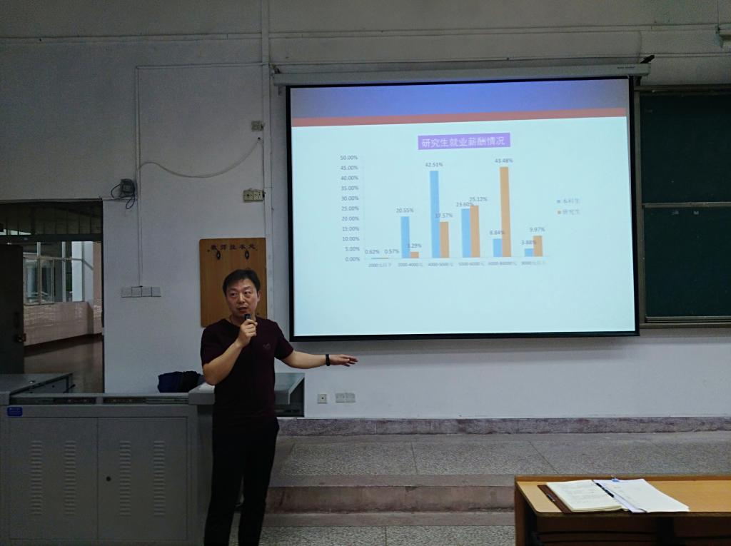 陈伟伯做了就业动员,对本科生就业前景和就业形势进行了分析,号召同学们面对考研深造、就业、考公务员、考教师等选择,尽早抉择,提前准备,练就本领,实现理想。马天围绕为什么要考研、如何规划考研、考研院校及导师选择等方面进行了详细介绍。年级辅导员还对本学期的学风建设进行了安排。动员大会鼓舞了同学们的就业考研士气,激发了同学们的学习热情,坚定了同学们实现自己理想的信心。