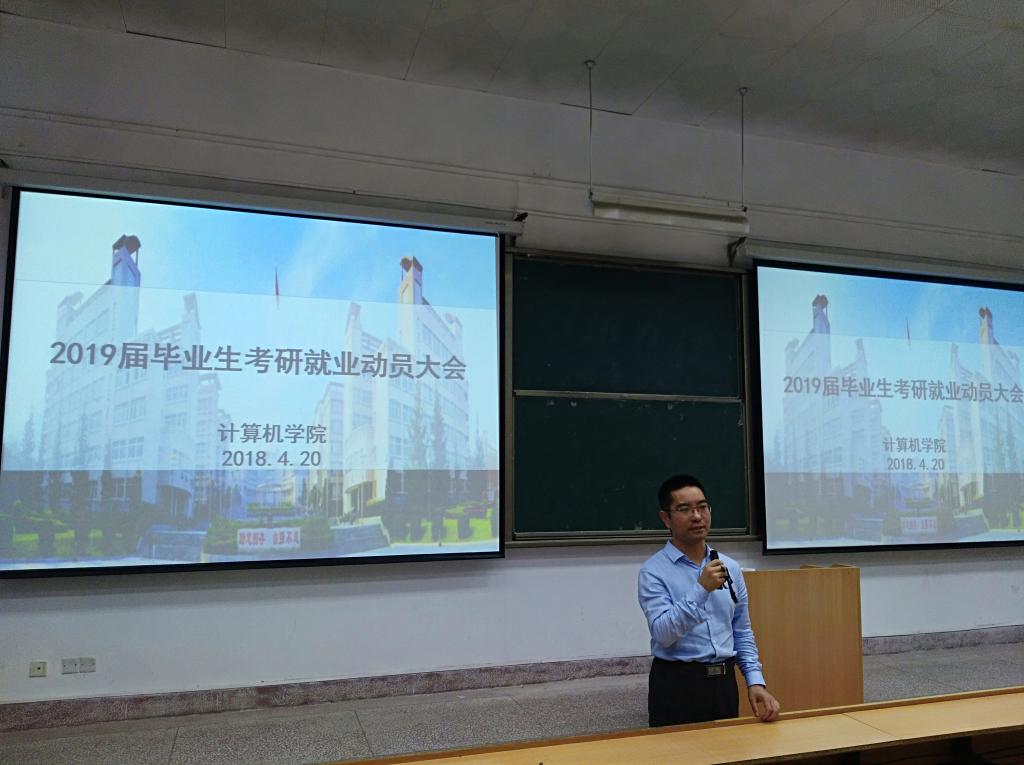 4月20日下午,计算机公司在临潼校区骊山校园举办2019届毕业生考研就业动员大会。公司党委副书记陈伟伯、副经理马天出席,2015级辅导员主持,2015级全体员工参加。